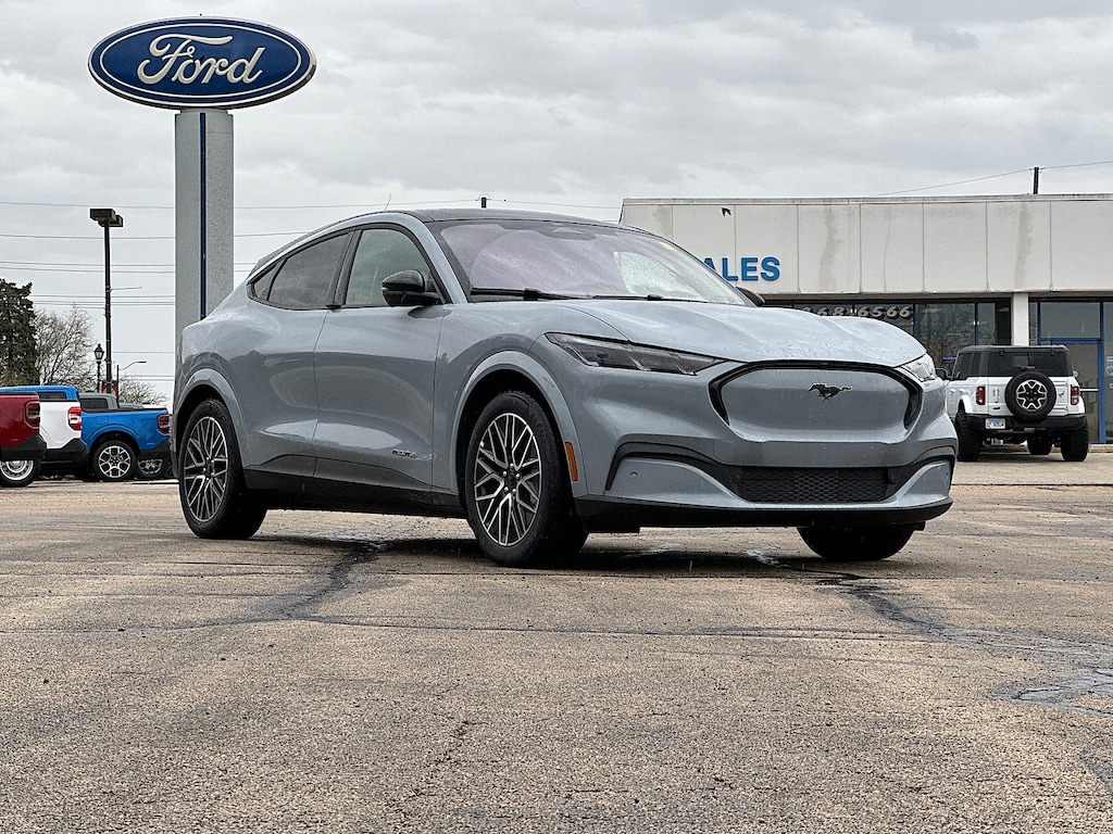 Introducing the 2025 Ford Mustang Mach-E Premium, a stunning fusion of innovation and performance. Dressed in an eye-catching Glacier Gray Metallic Tricoat exterior, this all-wheel-drive electric SUV commands attention wherever you go. Its sleek lines and modern design reflect the bold spirit of the iconic Mustang lineage. Inside, the Mach-E Premium features a sophisticated black interior that combines comfort and cutting-edge technology. Designed to elevate your driving experience, it offers spacious seating and premium materials, ensuring every journey is a pleasure. The powerful single engine delivers impressive acceleration while maintaining efficiency, making it perfect for both urban commutes and weekend adventures. Equipped with advanced safety features and a host of smart technology options, the 2025 Mustang Mach-E Premium is engineered for peace of mind and connectivity. Enjoy a responsive touchscreen infotainment system, intuitive controls, and seamless integration with your devices, all aimed at enhancing your everyday driving experience. Experience the future of electric mobility with the 2025 Ford Mustang Mach-E Premium-where performance meets sustainability in style. Don't miss your chance to own this exceptional vehicle.